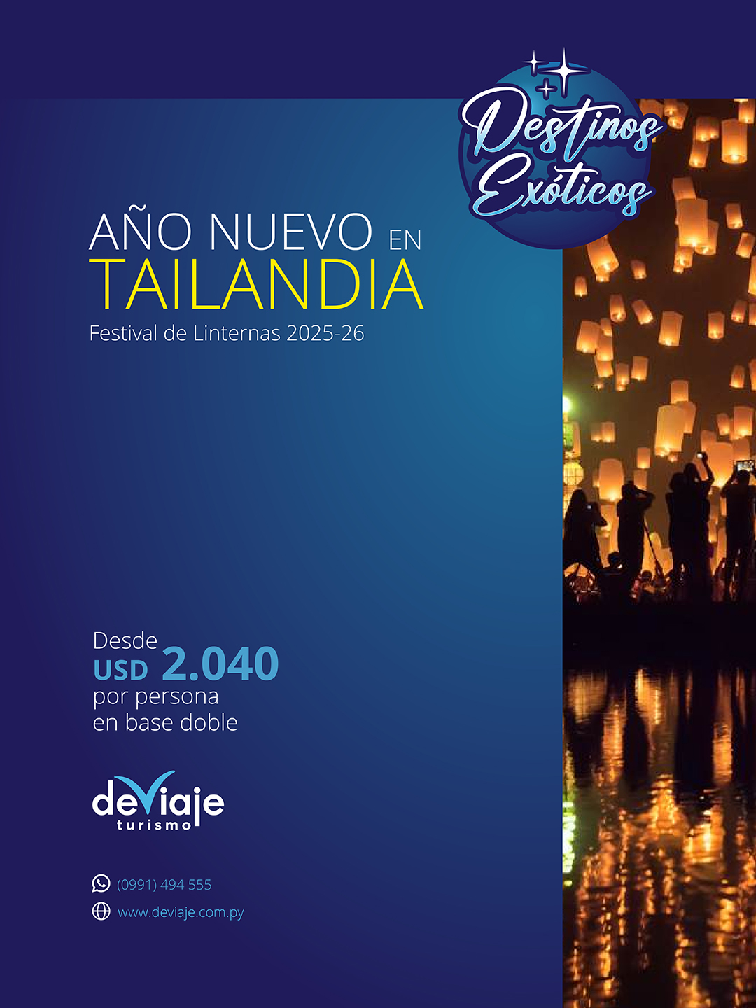 Explorá la esencia de Tailandia con este increíble paquete 🌸. Incluye 3 noches en Chiang Mai y 3 noches en Bangkok con desayuno, vuelo interno Bangkok/Chiang Mai/Bangkok y traslados de llegada y salida. No incluye vuelo internacional. 🛫✨ Viví la cultura, los templos y sabores exóticos del Sudeste Asiático.